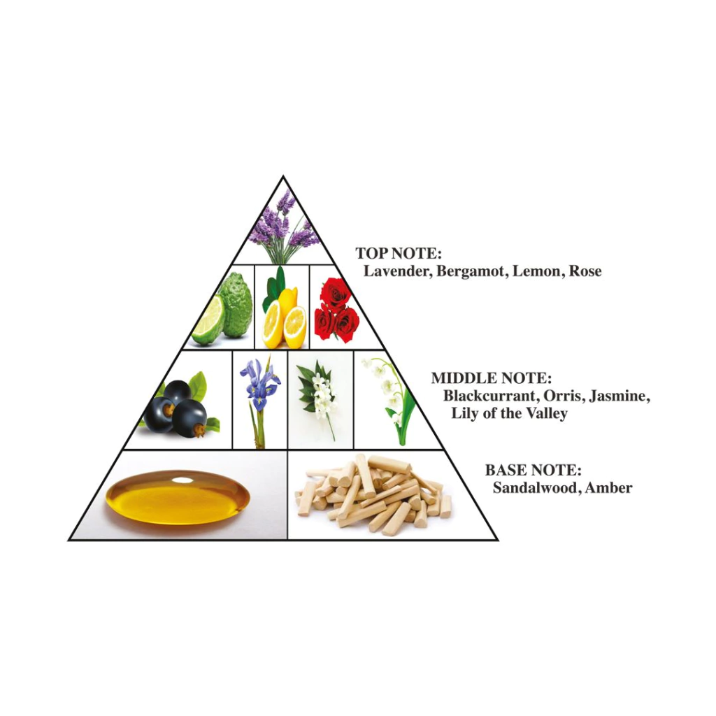 - Notas de topo: Limão, Bergamota, Lavanda, Rosa